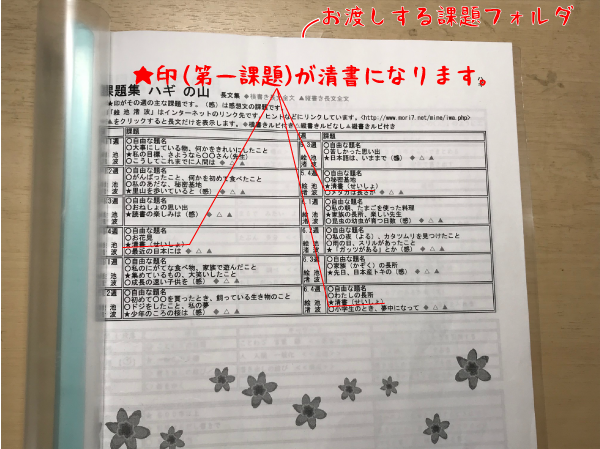2、4週目は清書をします。1〜3週の作文から選びます。![]() |